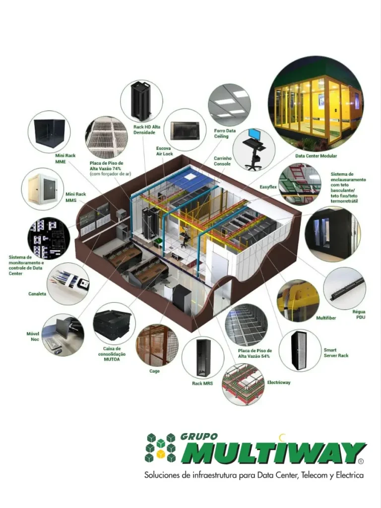 Infraestructura Multiway, Racks Multiway, Racks Autónomos, Canaletas de Aluminio, Bandejas para Fibra Óptica, Racks para Servidor, Enclausuramiento de Pasillo Frío, Enclausuramiento de Pasillo Caliente, Plafón Estructural para Centros de Datos